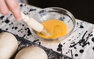 We transfer the pies on a tray lined with paper, grease with beaten egg and bake 40 minutes- temperature 180 C.